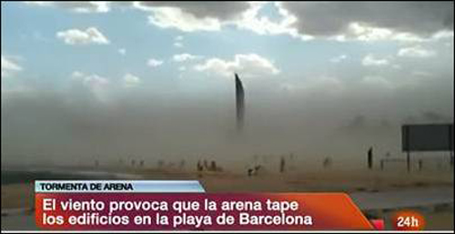 Como si de Spec Ops: The Line se tratará, una tormenta de arena de grandes dimensiones sacudió este martes la playa de la Barceloneta en Barcelona, obligando a todos los civiles a abandonar la zona en apenas unos minutos. Este fenómeno meteorológico, clave en el nuevo videojuego de 2K Games, puede reducir la visibilidad e incluso transportar la capa superior del suelo depositándola en otros lugares.Añadir Anotación